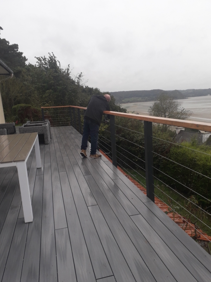 Face aux intempéries bretonnes, nos réalisations font preuve d’une robustesse exemplaire. Lignes minimalistes, style industriel assumé ou créations plus travaillées : nous ajustons l’esthétique à votre architecture. Nos garde-corps à fils inox, tubes inox ou barreaudage métallique subliment vos lames de terrasse en bois et créent des ambiances extérieures uniques.